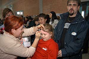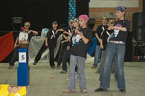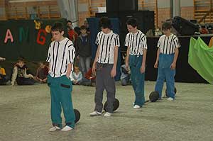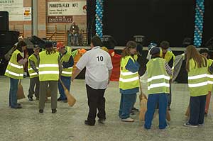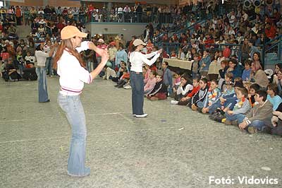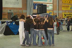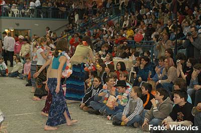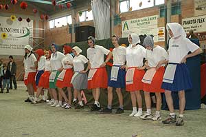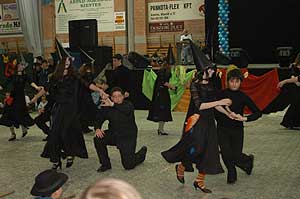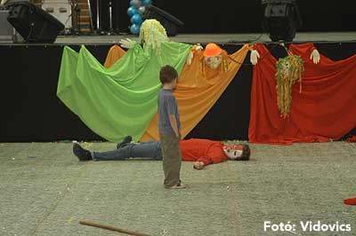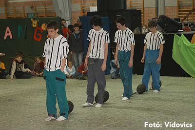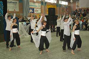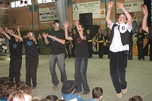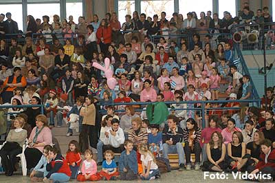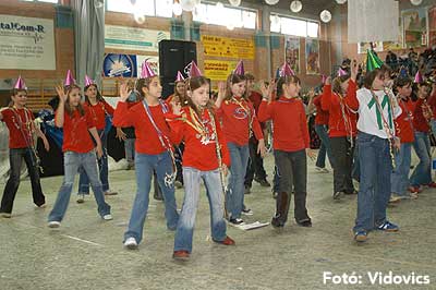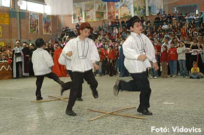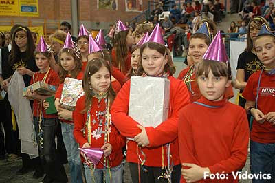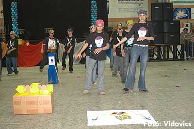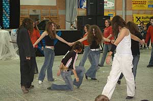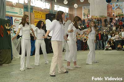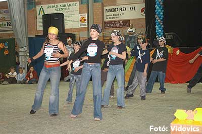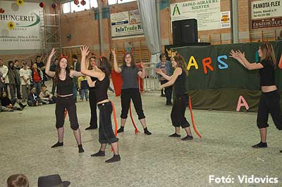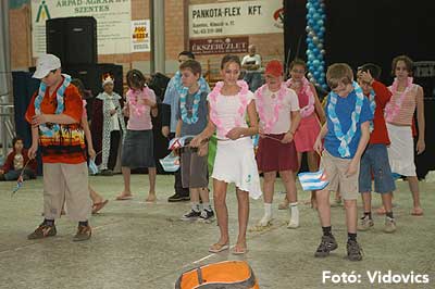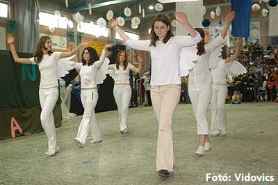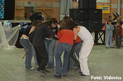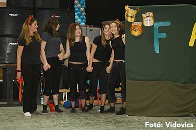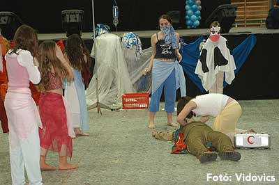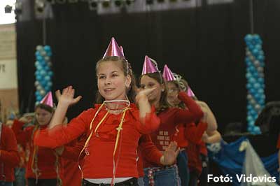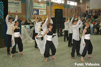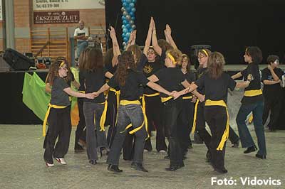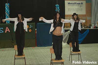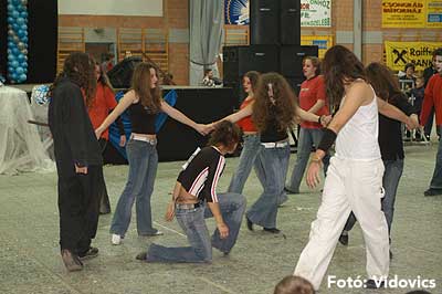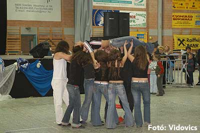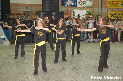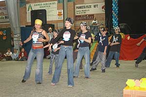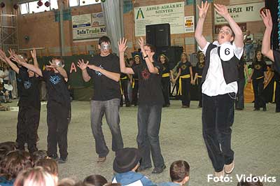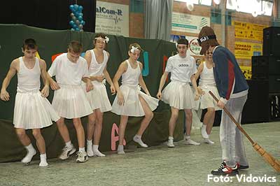 Miközben a sportcsarnok mellett folyt az eszem-iszom, addig a teremben a Pom-Pom együttes műsorát láthattuk, aminek a szlovén busók támadása vetett véget.