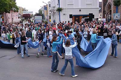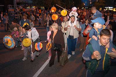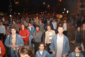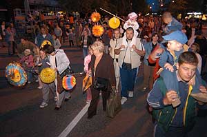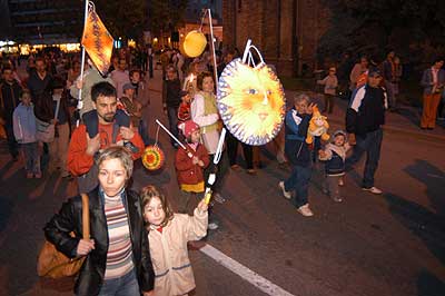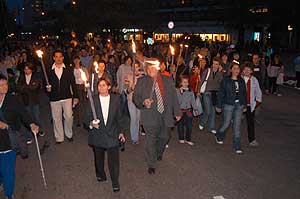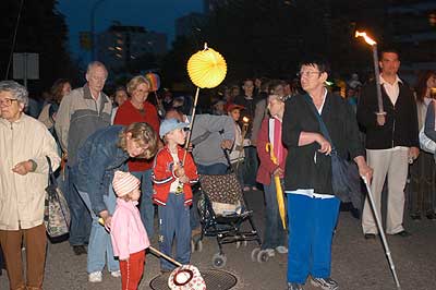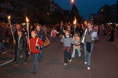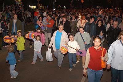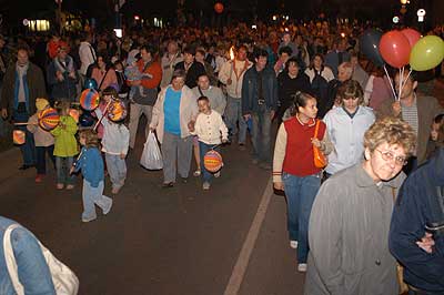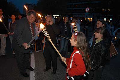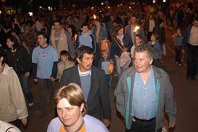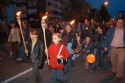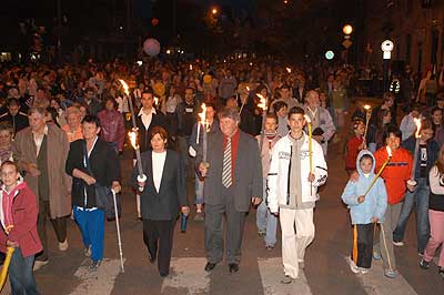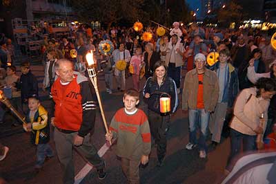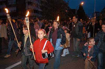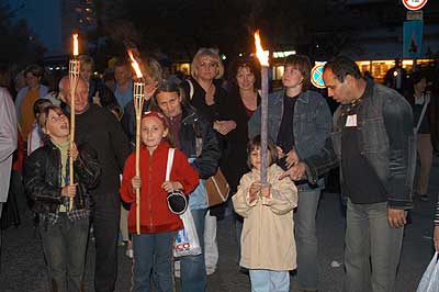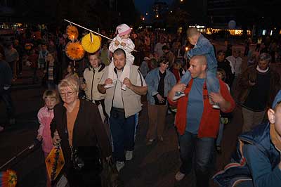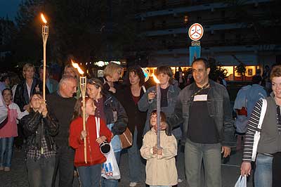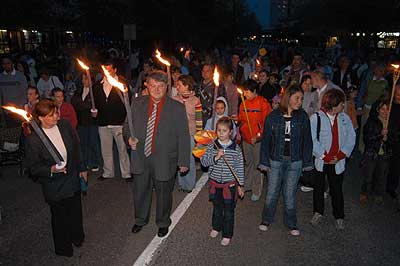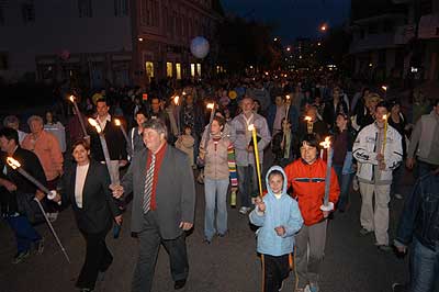 A látványos menet és az est leszállta után indult el a lampionos, fáklyás menet a Luther tértől.