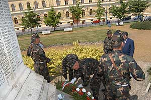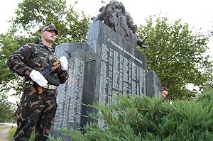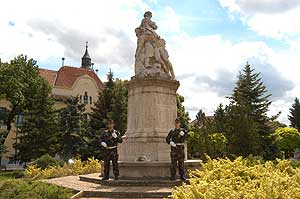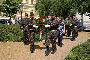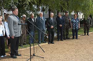 A volt hadifoglyok bajtársi szövetsége kezdeményezésére a város nem feledkezik meg a hősökről. Karikó-Tóth Tibor azzal zárta beszédét, hogy csak az a nép maradhat fenn, amelyik képes emlékezni a hőseire. A református egyházi iskola tanulóinak műsora után az önkormányzat, a fegyveres testületek és a volt hadifoglyok képviselői helyezték el koszorúikat az első és a második világháborús emlékműnél. Szentes, 2006. 05. 29. |