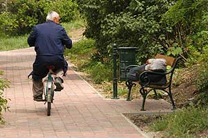 Feltehetnénk azt a prózai kérdést, hogy "Mi a különbség a két fenti kép között?", de talán nincs értelme ezt kérdezni, mert jól látszik, hogy a Kurca parton felújított sétány 4 db szemetese közül egynek lába kélt!