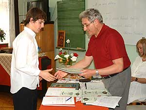 7-8. osztály: Zsűritagok: Pozsár Ferenc – Csongrád, előadóművész Szurmik Zoltán – Szentes, Horváth Mihály Gimnázium magyartanára Dr. Keresztesné Farkas Erzsébet – Szentes, Klauzál G. Általános Isk. magyartanára I. Trabalka Cecília: SZTE Ságvári Endre Gyakorló Ált. Isk., Szeged. Felk. nev.: Patonainé Kökényesi Katalin II. Juhász-Nagy János: ÁMK Általános Iskola, Székkutas. Felk. nev.: Kovács Lászlóné III. Banyó Enikő: Belvárosi Általános Iskola, Makó. Felk. nev.: Dancsi Györgyné IV. Spitzer Jenő: Szent Erzsébet Katolikus Általános Iskola, Szentes. Felk. nev.: Nemes Éva V. György Dénes: Kisteleki Általános Iskola. Felk. nev.: Hegedűs Erika Különdíjas: Tóth Alexandra: József Attila Általános Iskola, Hódmezővásárhely. Felk. nev.: Kókay Erika Szentes, 2006. 05. 09. |