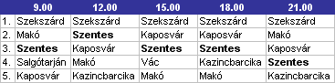 Szentes a neves küzdelemben sokáig a harmadik helyen állt, de az utolsó pillanatban, az este 9 órai összesítésnél Makó az ötödik helyről felugrott a második helyre így leszorultunk a dobogóról. A folyamatos összesítést figyelembe véve kérdezhetjük, hogy "Mi történt Makón?" Szentes, 2006. 05. 29. |