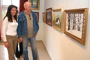 A Városi Könyvtárban 2006. május 6-án nyílt kiállítása kiváló lenne a Szentes környéki táj reklámhordozójának is: a Tisza, az ártér, csónakok, öreg fák, tanyák, zöldellő ágak – az elmúlt hónapok termése mind. A megragadó színes olajképek, pasztellek alatt azok némelyikének szénnel készült vázlatait is elhelyezte az alkotó. Szentes, 2006. 05. 15. |