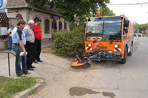 Sokan panaszkodnak, hogy Szentes utcái porosak és az este söprésnek induló autók hangosak. Ezen kívánnak segíteni, hogy mindenki a megelégedésére közlekedhessen, és aludhasson a városban. A régi elavult seprőgép helyett egy új úttisztító gépbe kívánnak beruházni. A képen látható csodabogarat az elmúlt héten próbálták ki a Rákóczi Ferenc utca azon szakaszán, ahol a csatornások levonultak, és az út széle nem lett a portól megtisztítva. Erre a szakaszra egy pár műszemetet is elhelyeztek (pillepalack és fél téglák), hogy bemutassák a tesztgép szívóerejét és hatékonyságát.