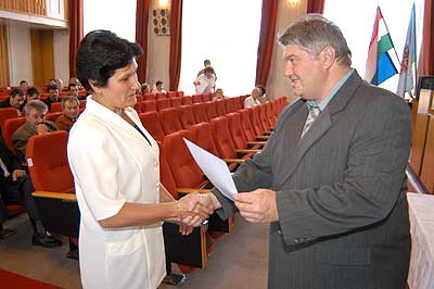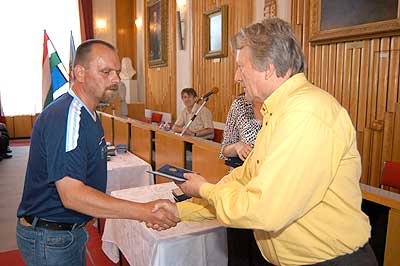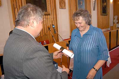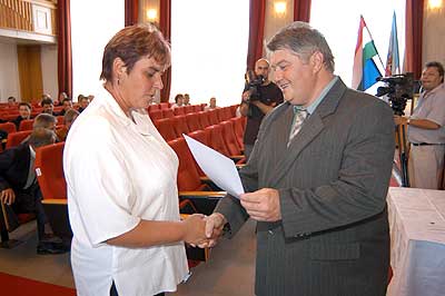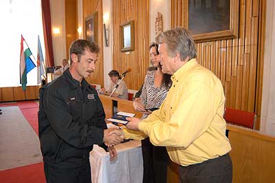 Most veszi át a megyei árvízvédelmi elismerést: Gazsi Sándorné, 595. Bethlen Gábor Cserkészcsapat /képviseli: Gilicze Andrásné/,