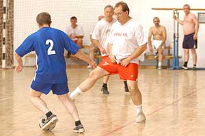 A csongrádi csapat Bedő Tamás vezetésével szerezte meg először a vezetést, de a szentesi csapat Sztantics Csaba jegyző úr irányításával szépített. Támadás, kontra, rekontra, szubkontra ... így teltek a percek, na nem azt ulti asztal mellett, hanem a Sághy Mihály Ipari Szakközépiskola, Szakmunkásképzõ Intézet tornacsarnokában. A barátságos találkozó végül igazságos döntetlennel zárult, a végeredmény: 3–3.
