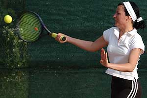 A foci mellett teniszben is összemérték a csapatok tudásukat. Szentes, 2006. 07. 03. |