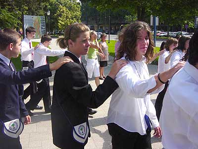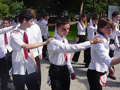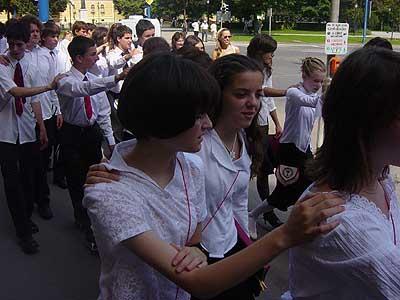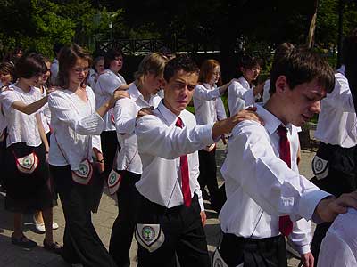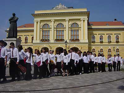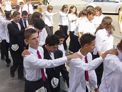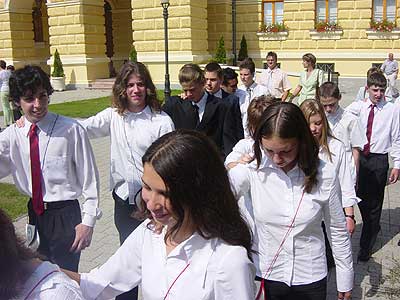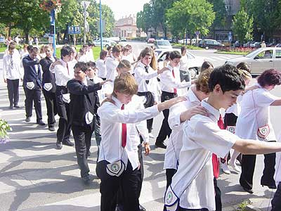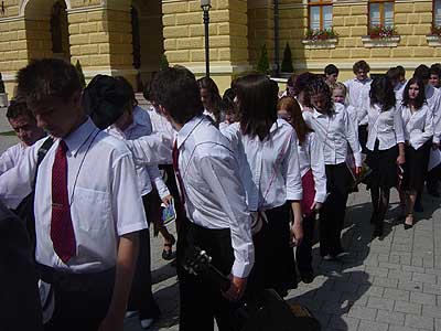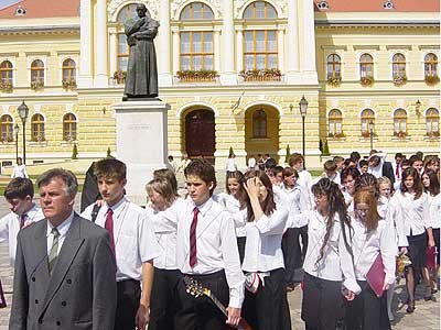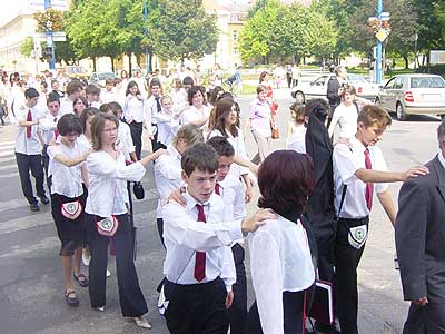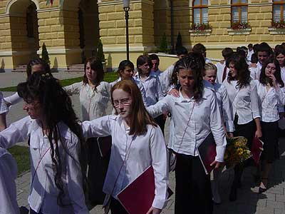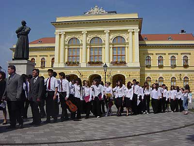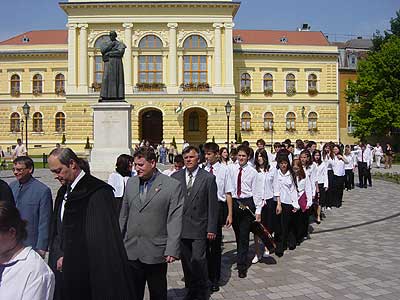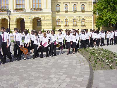 A végzős hallgatók a ballagás előtt szerenádot adtak a tanáraiknak, így búcsúztak és köszönték meg a sok évi gondoskodás, nevelést.