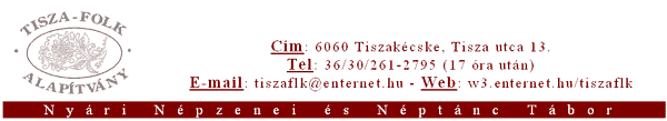 A TISZA-FOLK Alapítvány az idén is megrendezi nyári népzenei és néptánc táborát!
