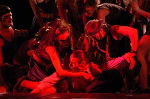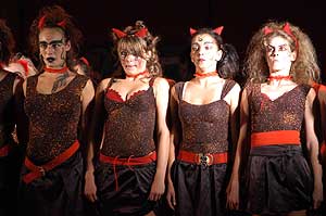 Ugyan az előadást eredetileg a Megyeháza udvarán mutatták volna be, de sajnos az időjárás ezt nem tette lehetővé, így a megszokott színházi környezetben láthattuk a zenés darabot. Szentes, 2006. 08. 10. |