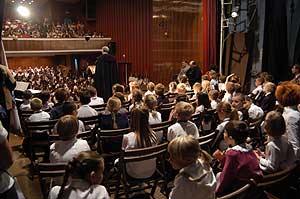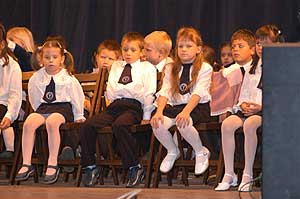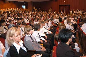 A diákok az iskolában gyülekeztek, és onnan sétáltak át a szomszédos színházba. Az elsősök mellett az izguló szülők vonultak. Látszott az elsősökön, hogy teljesen meg vannak szeppenve, de ha körbe néztek, akkor azt is láthatták, hogy sokan mennyire felszabadultan üdvözölték a diáktársakat, és rájuk is hasonló vár.