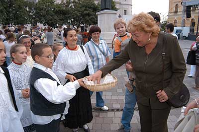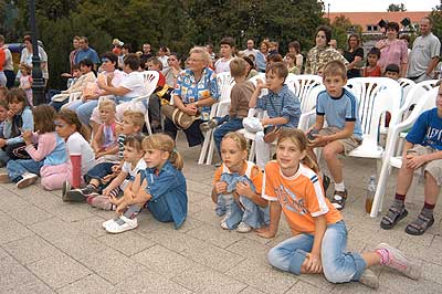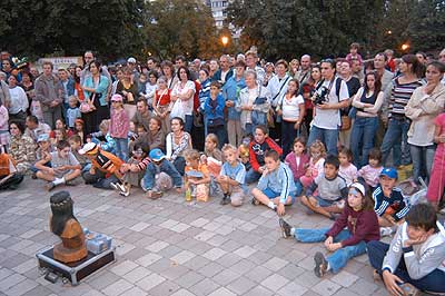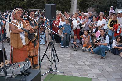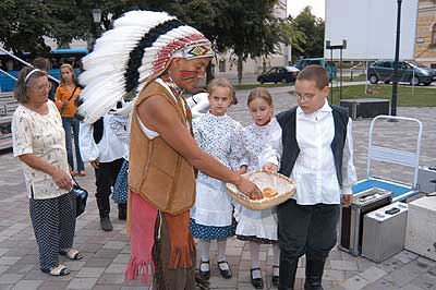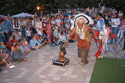 Este fél 7-kor a Horváth Mihály szobor előtt a Herenciás együttes (indián zene) elő kiskoncertjét hallhattuk.