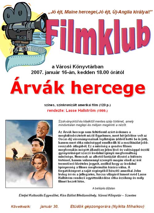 Január 16. Filmvetítés Lasse Hallström: Árvák hercege