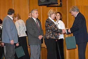 A koncert és az ünnepség végén Szűcs Lajos alpolgármester adott át könyvcsomagokat az oktatási intézmények vezetőinek. Szentes, 2007. 01. 28. |