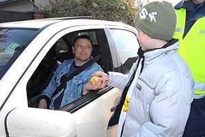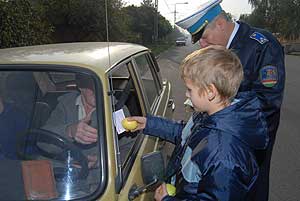 A közlekedési szabályok ellen vétő autósok büntetés és büntetőpontok helyett ez alkalommal citromot kaptak az „intézkedő” kisiskolásoktól, a szabályokat betartók pedig almát és közlekedésbiztonsági oktatási kuponokat kapnak jutalmul.
