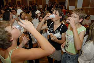 A verseny sikeréhez hozzátartozott a gólyafröccs is, amibe a kedves végzősök a mandula olajtól a mustárig, sótól a borsig minden benne volt. Egy feladat volt: csak meg kellett inni!