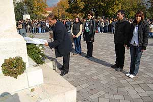 Az eseménydús délelőtt zárásaként Horváth Mihály szobrát koszorúzták meg , az egykori vallási- és közoktatási miniszter , a gimnázium névadója születésének 198., halálának 129. évfordulóján. A Kossuth-téren lezajlott ünnepség részeként a több hetes Horváth Mihály-tanulmányi verseny középiskolás legjobbjait is díjazták.