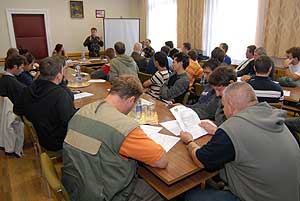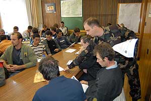 2007. október 3-án a Polgármesteri Hivatalba invitáltak munkanélkülieket azzal a céllal, hogy a helyi munkalehetőségek egyikéről, a szerződéses katonai állományba történő csatlakozásról adjanak részletes tájékoztatást a megjelenteknek. Juhász László és Szabó István századosok először bemutatták a 37. II. Rákóczi Ferenc Műszaki Zászlóalj munkáját, beszéltek az alakulat két fő profiljáról, a hídépítésről és a víztisztításról, illetve tájékoztatták a behívottakat a felvételi követelményekről, és annak folyamatáról, a szerződéses katonai szolgálat vállalható időtartamáról, a külföldi missziókban való részvételi lehetőségekről és az alakulat civil rendezvényeken történő sikeres helytállásáról is. Szabó István százados külön beszélt a jelenlévőknek a kereset kérdéséről is. Elmondta, hogy a havi fizetéshez kapcsolódnak a szolgálatok és a gyakorlatok után járó pótlékok is, amelyek a bruttó illetmény dupláját is jelenthetik időszakonként. Szentes, 2007. 10. 08. |