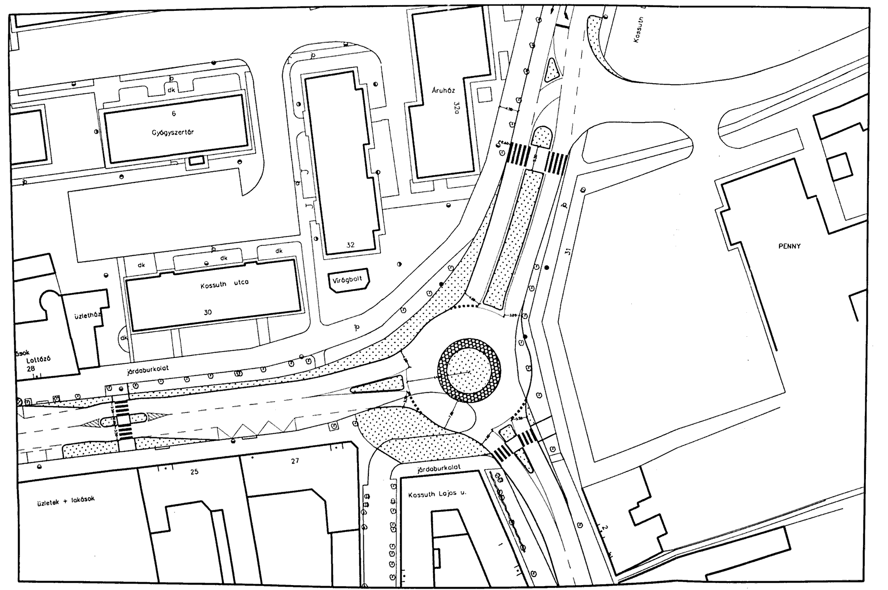 A Kossuth utca forgalomcsillapításával a részletes rendezési terv fog foglalkozni, így a most megtárgyalt javaslatgyűjtemény ezzel a kérdéssel nem foglalkozik.