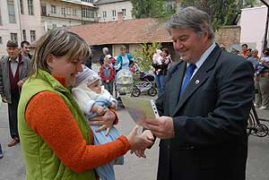 Tíz éves hagyomány, hogy évente kétszer facsemetéket ajándékoz az önkormányzat az előző félévben született új polgároknak. Az őszi eseményen a városháza udvarán Szirbik Imre polgármester köszöntötte a babákat és hozzátartozóikat.