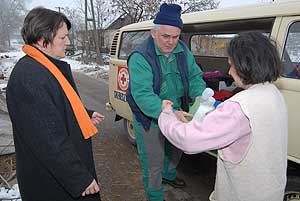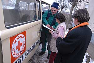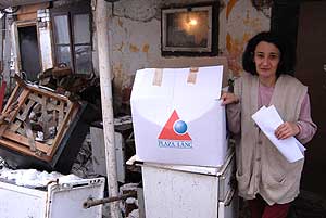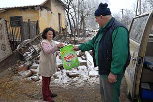 Szentesre több helyre juttattak adományt a rászorulóknak és így kaptak karácsony előtt csomagot Nagyék. A tíz gyermeket nevelő családnak elkél a segítség, mert igen nehéz körülmények között nevelkednek a gyerekek. Szentes, 2007. 12. 29. |