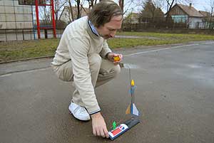 A tanár úr miniatűr rakétájának hatótávolsága 100 méter. Ez a magasság jelentősen alul marad a világűr és a légkör határától, de hát valahogy el kell kezdeni. Elmondása szerint neki van már földje a Holdon, csak igen körülményes azt meglátogatni.