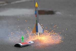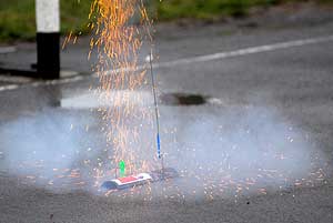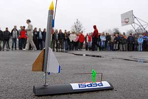 A diákok ámulattal várták a kilövést, majd elkezdődött a visszaszámlálás. 5, 4, 3, 2, 1, FIRE! Szóval TŰZ! Ekkor egy szál gyufával alágyújtott a rakétának Aranyi László, mely kis szikrázás után elindult az ionoszféra felé. Valami probléma adódhatott a kilövés körül, mert 4 méter magasságban elfogyott a tolóerő és a rakéta vissza zuhant a Földre, ezzel pontot tett az első szentesi űrmeghódítási kísérletnek. Szentes, 2007. 12. 13.