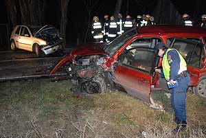Súlyos baleset történt 2007. február 23-án este a Szentes és Csongrád közötti úton (sajnos mondhatjuk, hogy a megszokott helyen :-( a belvízátemelőnél ). A rendőrség tájékoztatása szerint egy Csongrád felé haladó Volkswagen személygépkocsi előzésbe kezdett, s frontálisan ütközött egy szemből jövő Forddal. Az autókban csak a sofőrök utaztak, akik súlyos sérüléseket szenvedtek. A gépjárművek vezetőit a tűzoltók szabadították ki a roncsokból. A Volkswagen 30 éves győri sofőrjét és a Ford 21 éves szentesi vezetőjét a szentesi kórházba szállították. A 21 éves szentesi fiatal lánynak a combcsontja tört el és a mellkasa sérült meg életveszélyesen, őt az intenzív osztályon ápolják, állapota stabil. A rendőrség szakértők bevonásával vizsgálja a baleset körülményeit.