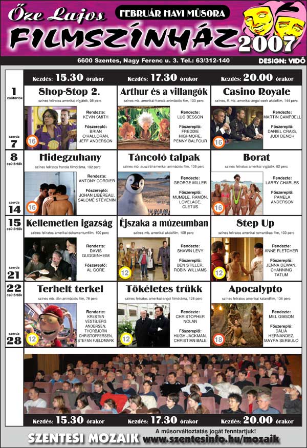Őze Lajos Filmszínház 6600 Szentes, Nagy Ferenc u. 3. Tel.: 63/312-140