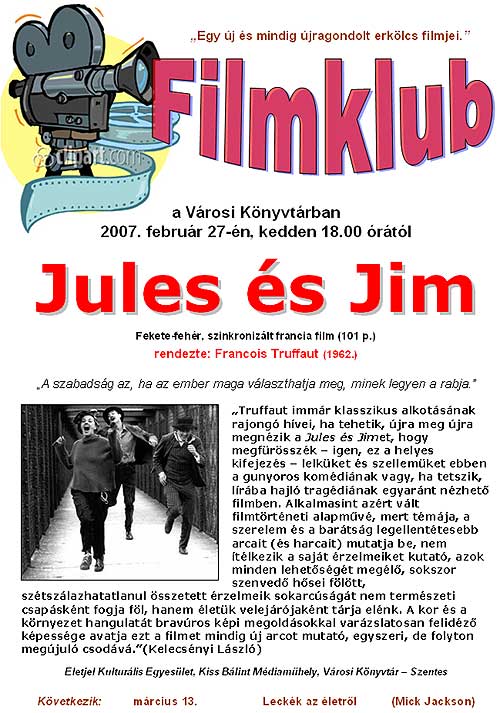 Truffaut: Jules és Jim Városi Könyvtár 18.00 óra