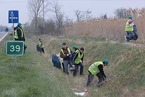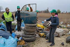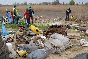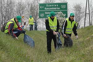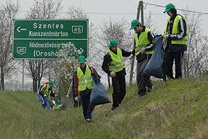 Ennek a délelőttnek eredményeként csaknem 400 zsáknyi szemét gyűlt össze a városba vezető utakon, és nem csak ennyi "nyeresége" volt az akciónak, hanem a fiatalok abban megegyeztek, hogy sokkal rosszabb így összegyűjteni azt a szemetet amit eldobálnak, ahelyett, hogy két pillanattal később egy szemétkosárban landolna a hulladék. Szentes, 2007. 04. 03. |