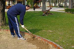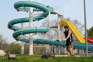 Füvet nyírtak, a büfé előtti területet zsírtalanították és letakarították, a gyermekek homokozóját felásták, valamint a strand nyári virágdíszeit helyezték a helyükre.