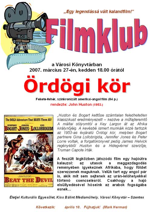 John Huston: Ördögi kör Városi Könyvtár 18.00 óra