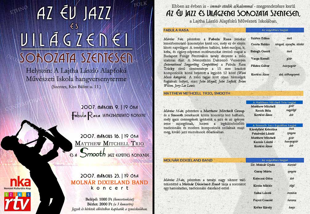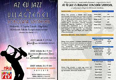 Március 16. Jazz napok Szentesen 2. A plakát kinagyítható! Matthew Mitchell Trio és a Smooth Jazz-együttes koncert Lajtha László Alapfokú Művészeti Iskola, 19 óra (péntek)