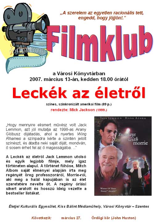 Mick Jackson: Leckék az életről Városi Könyvtár 18.00 óra