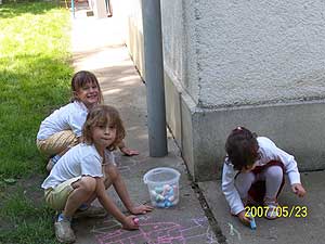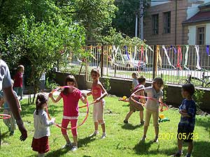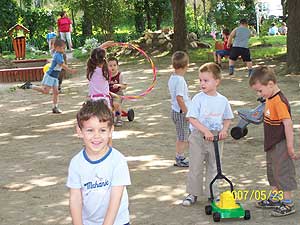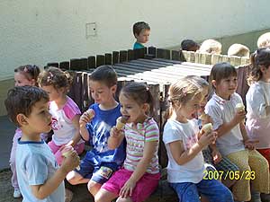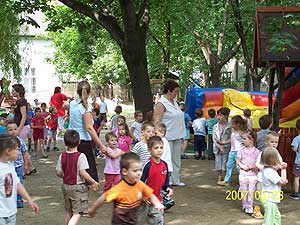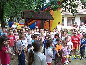 A nap folyamán, az ovi udvarán aszfaltkrétával rajzoltak a járdára, labdapattogtató, karikahajtó versenyeket kezdeményeztünk. Hűsítőül Nagy Zoltán cukrász jóvoltából fagyiztunk. Ezen a napon vendégül láttuk az eperjesi óvodásokat is. Egész nap szólt a zene, zsongott az óvoda, játék, móka, kacagás töltötte be óvodánk udvarát.
