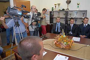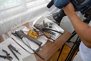 A rendőrség kitüntetett munkatársai érték tetten azt az elkövető-csoportot, akik 2007. április 21-én, hajnali két óra körül a szentesi Tisza-híd közelében lévő transzformátor-állomást rongálták meg. A magukat horgásznak álcázó elkövetők a trafó rézkábelét próbálták eltulajdonítani. Az eljárás során 9 hasonló bűncselekmény elkövetését is beismerték Békés és Csongrád megyében. Összesen 18 millió forint kárt okoztak ezzel az áramszolgáltatónak. Szentes, 2007. 05. 31. |