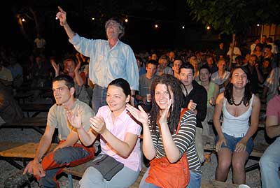 Ezen a szombati napon az időjárás is kegyeibe fogadta a két zenekart, mert kellemes (picit szeles) de friss levegő és meghitt hangulat várt mindenkit a Tiszti Klub kerthelységében. A 40 éven aluliak csak szülői felügyelettel léphettek be (ez állt a plakáton), de jó érzés volt, hogy nagy számban voltak fiatalok is a padsorok között. Az élőzene még mindig sláger, ezt bebizonyította a két banda is, akiknek tagjai a Föld különböző pontjáról utazta haza Szentesre a koncert idejére.