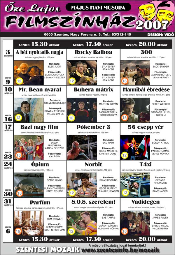 Őze Lajos Filmszínház 6600 Szentes, Nagy Ferenc u. 3. Tel.: 63/312-140