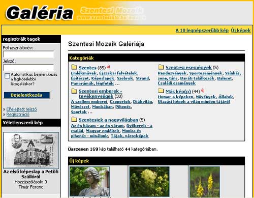 Régebben ez a funkció már működött, de egy rendszerösszeomlás véget vetett neki! Igaz sok kép elveszett, de az összes regisztrált adata és regisztrációja megmaradt. A galériába képet lehet fel- ill. letölteni, de akár E-card-ot (Elektronikus képeslapot) is küldhetünk szeretteinknek szentesi képpel díszítve!