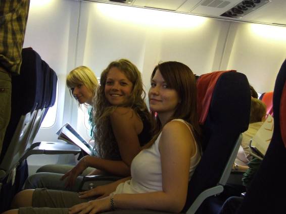 Fényes délben, 1 órakor indultunk el Budapestre, ősi magyar szokás szerint busszal. Ez az élmény mindenkinek ismerős, felesleges rá sok szót vesztegetni. Ettünk, ittunk, vidám nótákat énekeltünk és vetettünk néhány búcsúzó pillantást az alföld napcsókolta búzamezőire. A repülés ezzel szemben újdonság volt a csapat nagy részének. Már eleve az is az utazásra irányította a figyelmünket, hogy a szigorú reptéri tilalmaknak engedelmeskedve sem ételt, sem italt nem vihettünk fel a gépre. Aztán meg izgalmasabbnál izgalmasabb élmények értek minket: a vihar az indulás előtt, a bizsergető gyomorgörcs és az üléshez lapító nyomás a felszálláskor és a tiszta, felhők feletti új világ látványa, ahol félszemű bárány-ördögök, ötkarú balerinák és kövér antilopok szökelltek felénk…. Kattogtattuk is a fényképezőgépeket szorgalmasan!