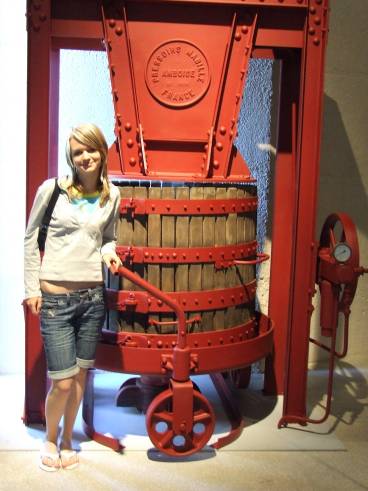 A második napot már együtt töltötte boldog, boldogtalan, francia és magyar, tanár és diák. Korán reggel (számomra borzasztóan korán, de döntse el mindenki maga, tessék, az indulás pontos ideje 9 óra volt) buszra szálltunk és Cognac felé vettük az irányt, azon belül is a Cognac Múzeum volt az úti cél. A múzeumban kellemesen telt a délelőtt. Amellett, hogy éppen megfelelően hűvös klíma uralkodott odabent, sok-sok érdekességet megtudhattunk a konyakos üvegek tervezőmunkálatairól és magának az italnak az elkészítéséről is. Ami rám, személy szerint a legnagyobb hatást tette, az egy zárt ajtó volt a múzeum egyik félhomályos csigalépcsőjének tövében. Fából összetákolt, régi kis ajtó volt, azt hogy atombiztos, csak egy kb. 5 tonnás acélzár és egy gyanús, piros fénnyel villogó riasztó árulta el. Az állt rajta szép, nagy betűkkel: Paradicsom. (valójában a „paradis” szó virított ott). De engem nem a vallásos buzgalom vonzott az ajtó mögötti szobába. A Paradicsom, ha konyakokról van szó, egy olyan szobát jelent, ahol az év legígéretesebb nedűi érnek szépen, csendben, hordókba zárva…. Az ajtót minden évben csak egyszer nyitják ki egy kis ellenőrzésre, és az ottjártunk napja nem egy ilyen nap volt. Így hát anélkül hagytuk el Cognac-ot, hogy akár csak egy nyalásra is megízlelhettük volna a környék specialitását.