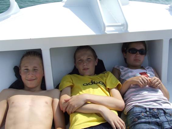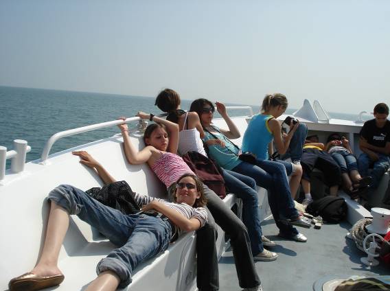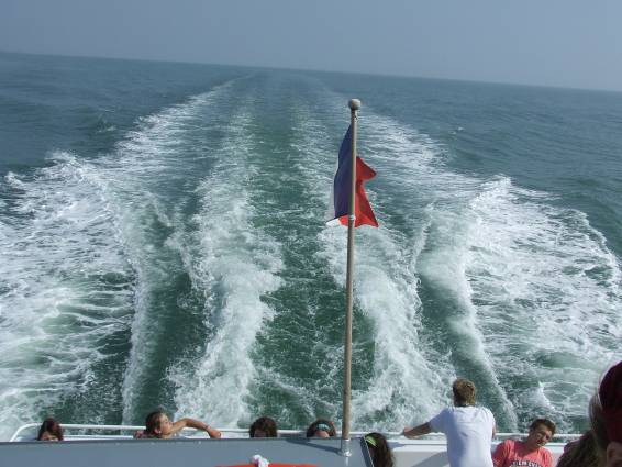 De a délután kárpótolt minket mindenért. La Rochelle-be mentünk hajókirándulásra. A kikötőbe érve első élményünk egy kissé hiányos hajzatú fiatalember volt (elől kopaszra borotvált fej hátul varázslatos lófarokkal), aki érzelmes skót népdalokat adott elő az utcán némi apróért, természetesen skótdudán. Még akkor is hallottuk édes muzsikáját, mikor már a nyílt óceánon siklottunk. De már senki nem figyelt rá, a látvány lehengerelt mindenkit. Legalábbis kezdetben. Néhány jólsikerült fotó után a napfényben habzó hullámokról, a sirályokról és a kikötő távolba vesző, fehér tornyairól a legtöbben bámészkodás helyett inkább napozásra adták a fejüket. Elhaladtunk a népszerű játékból ismert hátborzongató erőd, a Fort Boyard mellett is. Egy hosszú, piros lépcső vezetett a borzalmak erődjébe, de akkor éppen egyetlen áldozat sem közeledett felé.