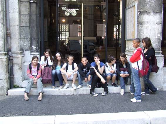 Nous avons passé le troisième jour à Angoulême. Le matin, nous avons assisté aux cours des petits Français. Nous étions séparés en groupes et nous avons vu des leçons différentes par exemple: les maths, la gymnastique, l’anglais ou la géographie. Puis, nous avons visité les curiosités d’Angoulême: la cathédrale, l’Hôtel de Ville et comme Angoulême est la capitale de la BD ( bande dessinée), nous avons pu voir les images sympathiques de petits personnages comme Snoopy ou Pluto au Musée de l’histoire de la BD. Après le déjeuner qui a été servi dans un lycée, nous avons joué à un jeu tous ensemble, avec les Français, pour découvrir la ville. Puis nous avons eu un peu de temps pour acheter des cadeaux dans le centre-ville.