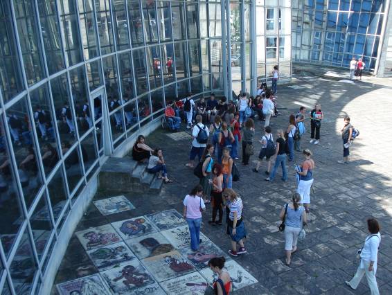 Túléltük és fellélegezve, vidáman ugrottunk fel a buszba, ami a város szíve felé vitt minket. Megcsodáltuk Angoulême nevezetességeit: a katedrálist, a városházát, a színházat, a képregény múzeumot…. Csoda, hogy Angoulême nem tett szert nagyobb ismeretségre a turisták körében. Gyönyörű város. Minden egyes épülete hófehér kövekből épült, minden egyes lélegzet ősi és romantikus itt, minden utcán királyok és királynők lábnyoma fénylik. A lelkesedésünk azonban némileg alábbhagyott délután, mikor ugyanezeket az utcákat égető, izzasztó déli napsütésben, egy bonyolult játék keretein belül kellett újra bebarangolnunk. Nagyjából megpróbálom felvázolni a szabályokat, hátha egy szuperintelligens olvasónak sikerül feldolgozni őket: franciák és magyarok alkották a csapatokat, mindenki kapott egy térképet Angoulême-ről és egy listát, amin 15 olyan kérdés szerepelt, amitől még Angoulême alapító atyáinak is keresztbe állt volna a bajsza! Hogy mi lett a végeredmény vagy lett-e végeredmény egyáltalán, azt a magyarok közül soha, senki nem tudta meg: a francia szervezők, látva kétségbeesett, gyanúsan vöröslő ábrázatunkat, inkább elküldtek minket vásárolni. Ennyire boldoggá még sosem tettek minket azelőtt.