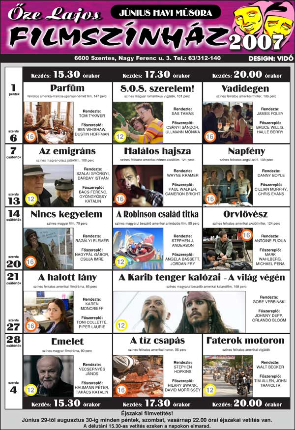 Őze Lajos Filmszínház 6600 Szentes, Nagy Ferenc u. 3. Tel.: 63/312-140