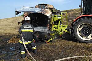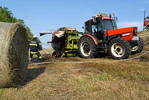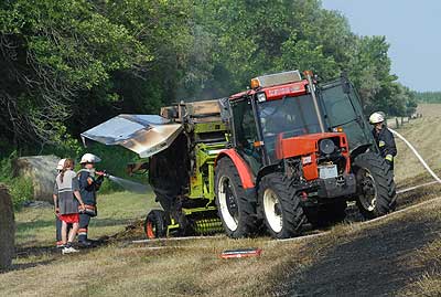 A képeken látható bálázó nem vétett a bevezetett tűzgyújtási tilalomnak, mert nem jószántából gyulladt ki a nagy hőségben. Valószínűsíthető, hogy műszaki hiba okozta a szikrát, ami a bálázóban található növényi maradékot meggyújtotta 2007. június 25-én. A szentesi Tisza gát oldalról gyűjtötték volna be a szénát, amikor megtörtént a baj. Az oltásban szentesi és csongrádi tűzoltók vettek rész, ami személyi sérüléssel nem, de jelentős anyag kárral járt.