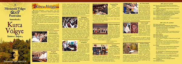 Kinagyítható! Az idei Művészetek Völgye kulturális fesztivál egyik kiemelt vendége Szentes és Szegvár a Kurca Völgye. Az egyhetes kulturális fesztivál első két napján, július 27-28-án mutatkoznak be a két település művészeti csoportjai. Pénteken Taliándörögdön lép fel a Pengető Citera Zenekar, a Dobbantó Néptánc Együttes, a Szentesi Ütős Együttes és a Tűzköves Színjátszók. A városi fúvószenekar teherautón járja végig a völgyet, majd a megnyitón muzsikál. Szombaton falusias játékok, tekerő és citeramuzsika, népdalok, képzőművészek és különböző előadók népszerűsítik Szentest és Szegvárt a Művészetek Völgye közönségének Taliándörögdön. Szentes, 2007. 07. 26. |
