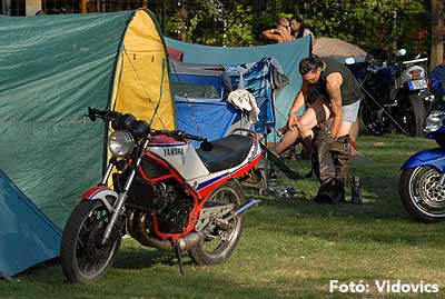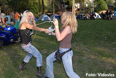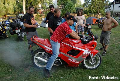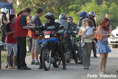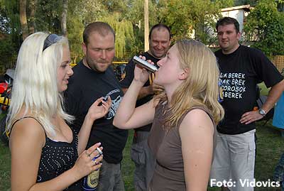 A színpadon viszont nagy "gáz" volt, azaz gázpalack, melyből héliumot lélegeztek és a közönség kedvenc nótáit énekelték el az énekverseny résztvevői. Az idei találkozó már jóval népszerűbb volt, mint elődjei. Míg 2004-ben mindössze 130 motoros látogatott ide, most ötszáz. |