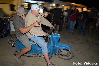 A vazelinfutás célja egy pofa sör volt. Egy 15 méter hosszú gumiszőnyeget jól megöntöztek több liter mosogatószerrel. A vállalkozó kedvű derekára rákötettek egy gumikötelet, amelynek másik végét egy fához erősítették. A sört elhelyezték a szőnyeg másik végére, s a delikvensnek futva kellett megszereznie. A közönség óriási derültségére a próbálkozók hatalmasakat estek a csúszós talajon. A találkozón egy daru is szerepet kapott. Nem a sárból emelte ki az esetleg elsüllyedt mocikat, hanem ezzel biztosították a sörösrekeszmászókat. A feladat először egyszerűnek tűnt: a versenyző biztosítókötelet használva egymás tetejére rakta a rekeszeket, s így jutott egyre feljebb. Átlagosan 8-10 rekesznél dőlt le a torony, de a csúcs 22 volt.